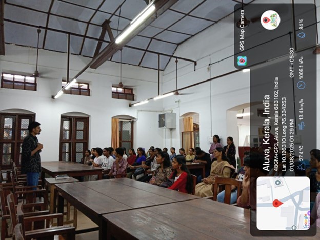 A book introduction session was organized by Library Club Granthika on 01/08/2025 at 1.15 PM in the Central Library. The Malayalam novel ‘Kaalam’ written by M T Vasudevan Nair was introduced by Mr. Jins Mon James, PHD Scholar, Malayalam Dept. He shared insightful perspectives on the literary elements, themes and cultural relevance of the work, engaging the audience with his in-depth analysis and presentation. The presence of the Principal Dr. Mini Alice and other faculty members added significance to the program and their encouraging words motivated the students to participate in such intellectual gatherings. The event was a part of the library’s continuous efforts to promote reading and literary discussions among students and staff.